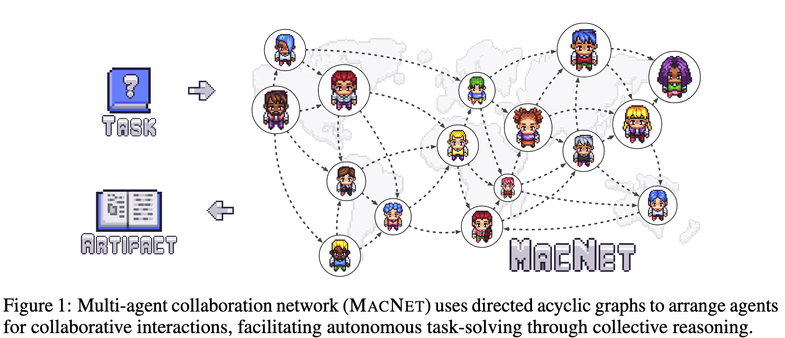 해당 연구에서는 이를 위해서 multi-agent collaboration network (MACNET) 을 제안하였다.