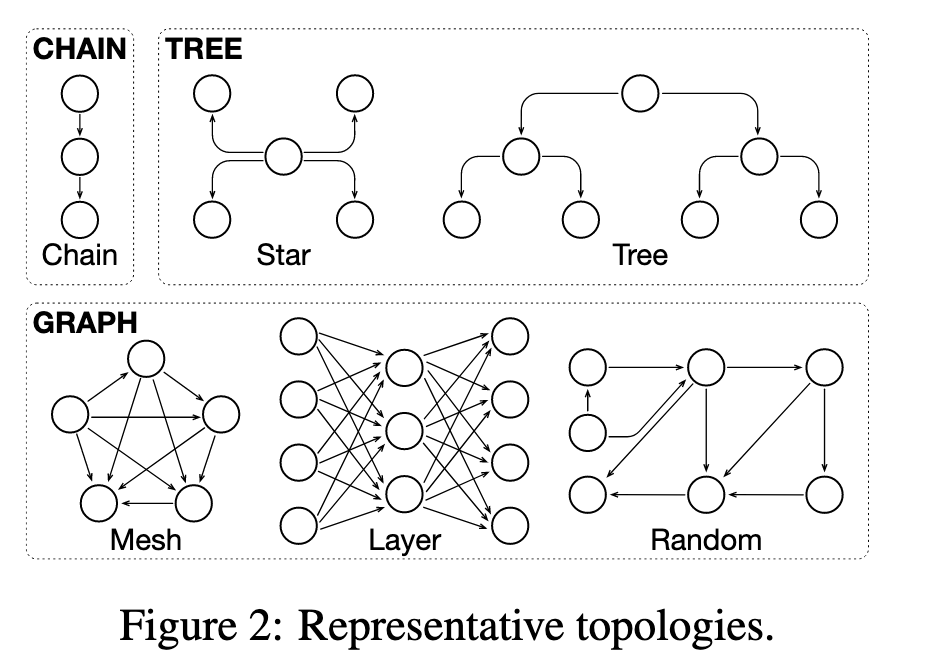 - 특정 task 에 특정 topology 가 더 적합: chain → software development, tree → creative writing
